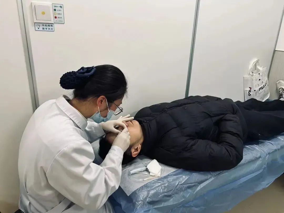 医生正在为患者检查眼睛(图源:宁波晚报)
